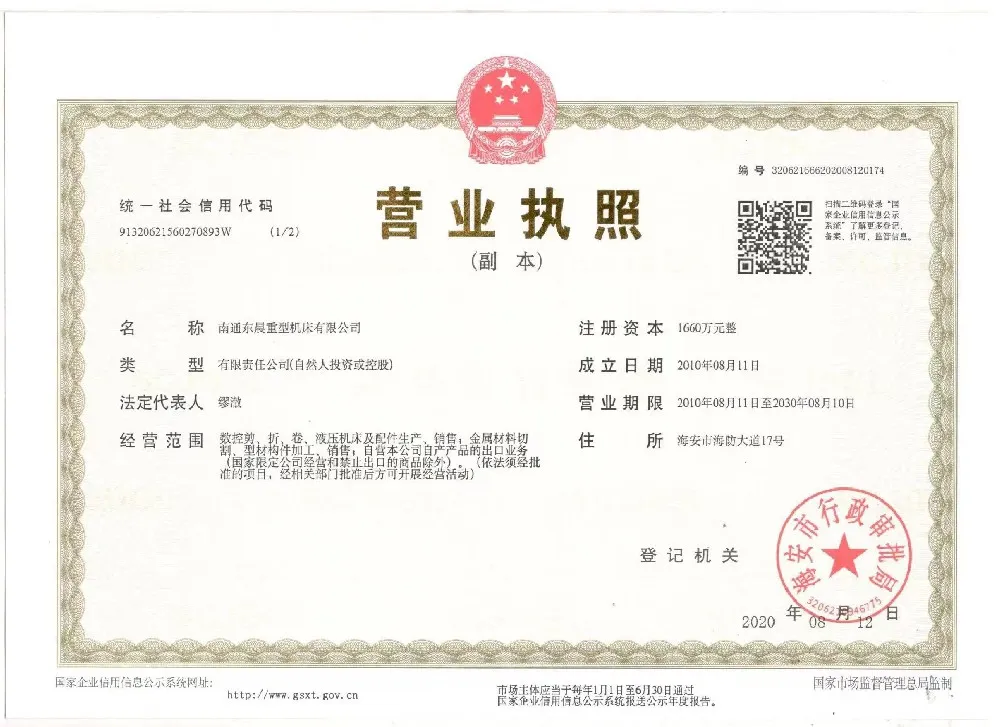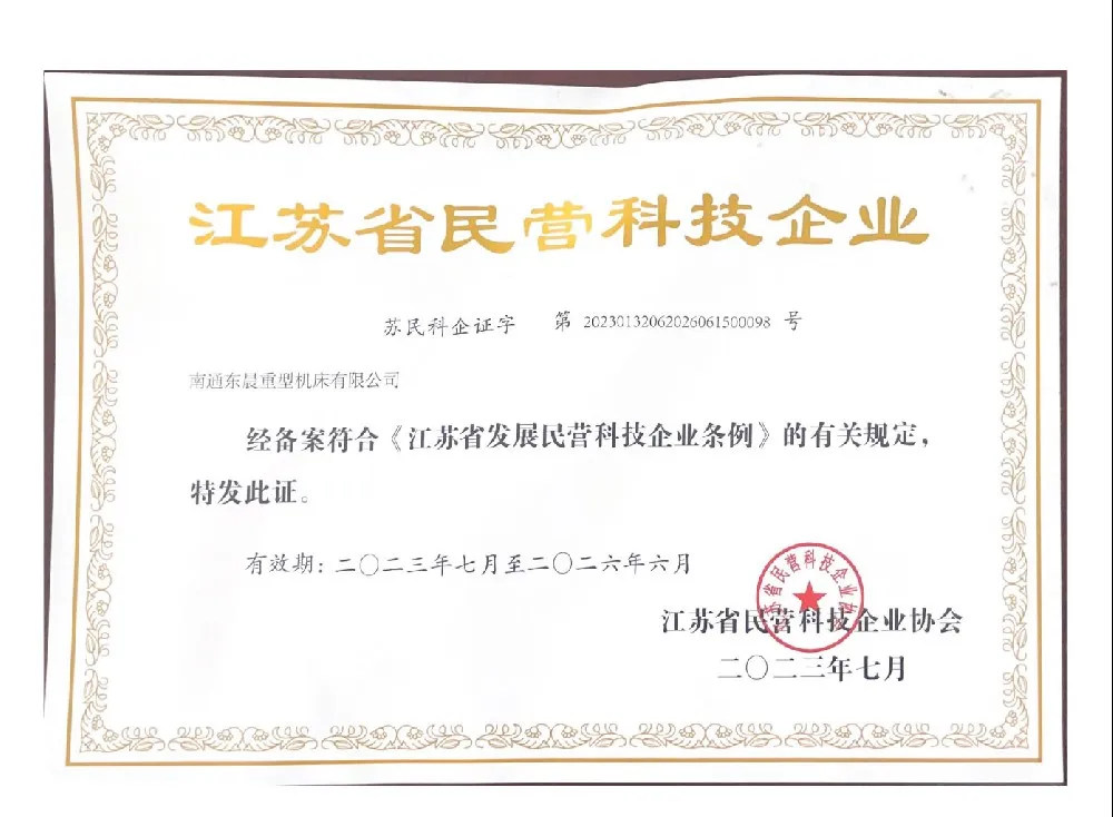 南通东晨重型机床有限公司始终坚持以质量为根本、以信誉为基石,严格遵循国家及国际标准构建科学完善的管理体系。多年来,公司凭借扎实的技术实力、严谨的生产流程和优质的服务水平,先后通过多项权威认证与资质评定,获得行业与市场的高度认可。以下为我公司部分核心资质与荣誉证书,充分展现了我们在研发创新、生产制造、质量控制及企业管理等方面的综合实力。
