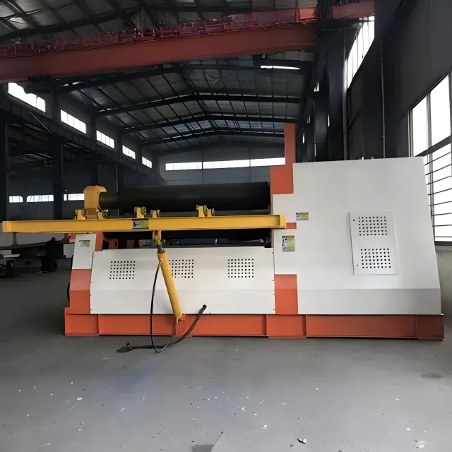 四辊卷板机用于制造压力容器、机械、水电、建筑等行业的筒体的预弯、卷圆,同时具有校圆、校平功能。上辊液压马达方式主传动,通过钢板与辊子之间的磨擦力带动下辊、侧辊转动,为卷圆提供扭矩。下辊、侧辊、翻倒架液压驱动。下辊垂直升降、侧辊倾斜弧线升降。预弯通过下辊上升夹住钢板,侧辊倾斜上升实现板材端部预弯。